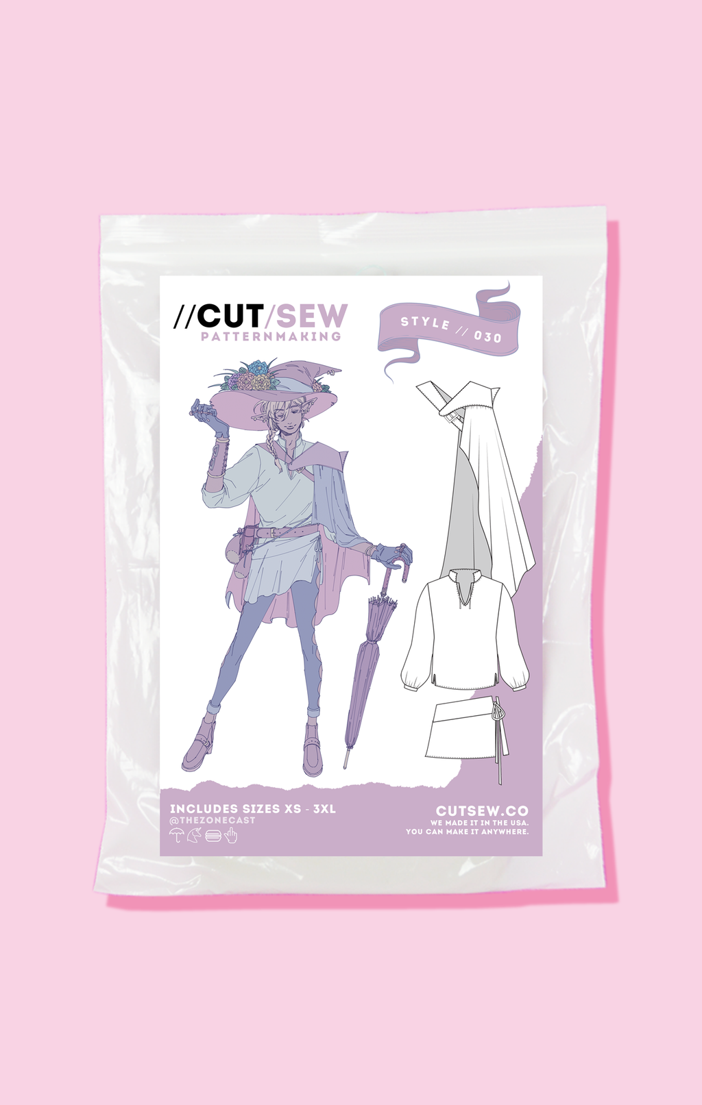 Save your spell slots no more! This cosplay sewing pattern is approved by your Oldest Brother Justin McElroy & features America's favorite TV wizard, Taako from The Adventure Zone. Included are the pieces for a peasant-style top, a wraparound apron/skirt combo, and a stylish half cape - Umbra Staff not included.
