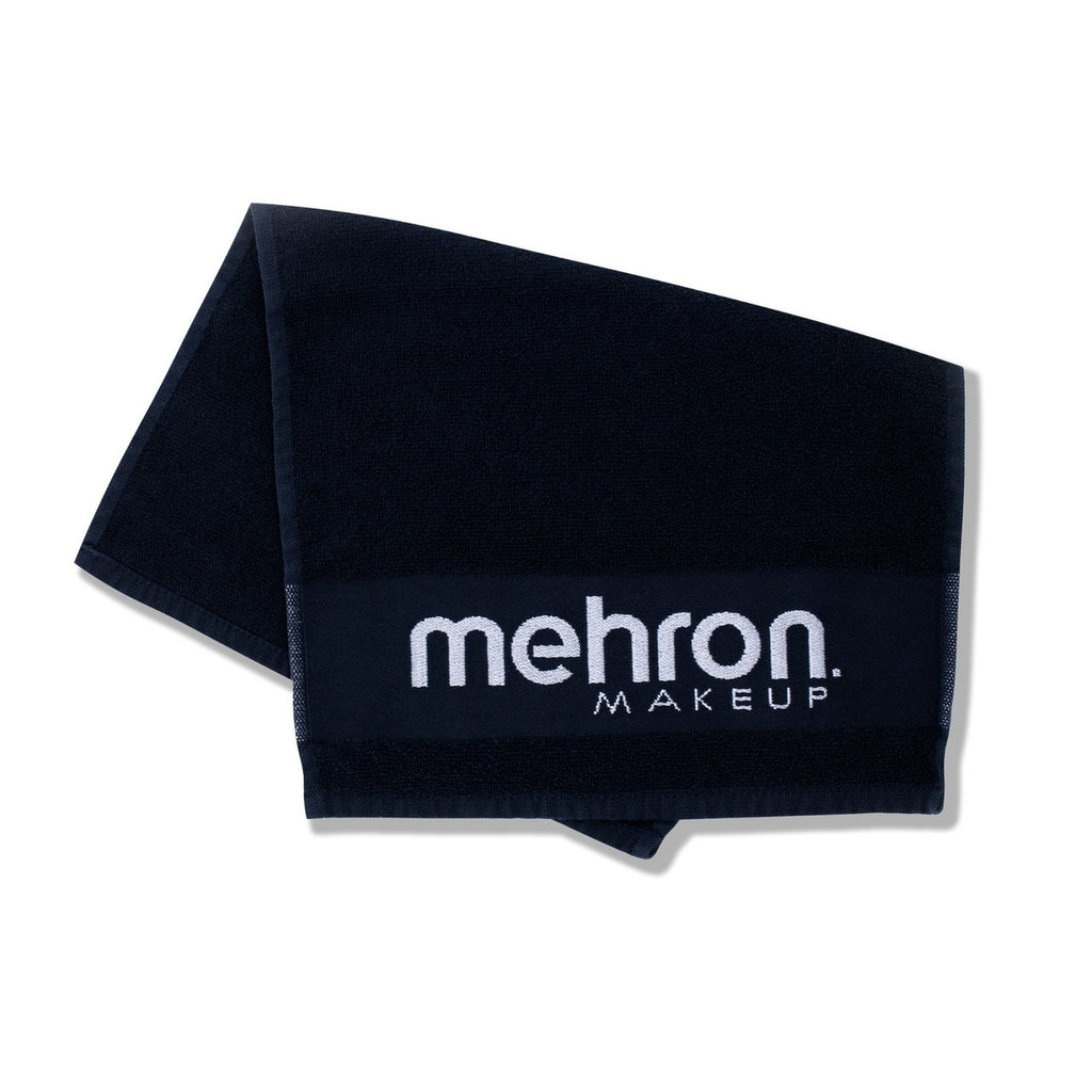 Mehron's very own branded towel for makeup stations! Use to protect surfaces, dry off brushes, wipe hands and more. This black towel with silver mehron logo is 11'x8' and made of 90% cotton and 10% polyamide. It's the perfect size for travel and fits easily into makeup kits. Machine washable and durable.